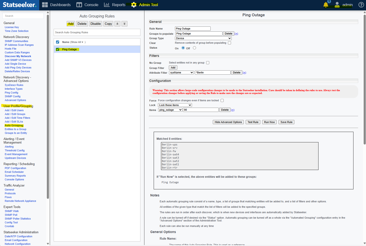 The PIng Outage time can also be set using auto-grouping as per the example below: